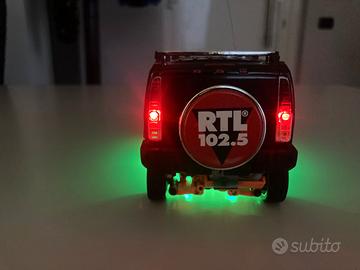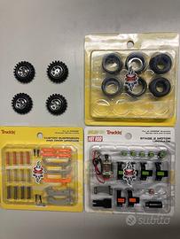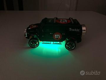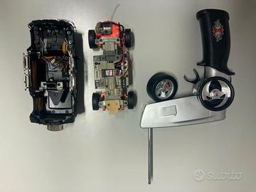 Macchina radiocomandata della Carson. E' una XMODS TRUKING. La macchina presenta diversi accessori come le luci/stop, cuscinetti a sfera, trazione 4x4. Come da foto ci sono diversi accessori: 4 treni di gomme, 4 cerchi, molleggi, motore con diversi rapporti, barre sterzo. Alla macchina manca un piccolo pezzo che ho sostituito con un pezzo di legno(funziona comunque, serve solo per agganciare la scocca)
