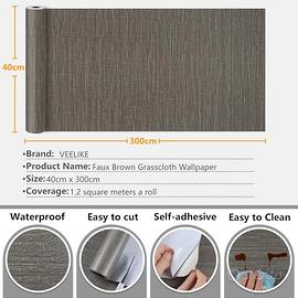 Pellicola per mobili, carta da parati marrone scuro, pellicola decorativa vintage, pellicola autoadesiva, decorazione impermeabile per bagno, soggiorno, 40 cm × 300 cm