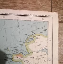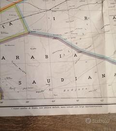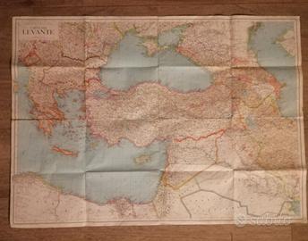 Carta geografica del 1942 - Consociazione Turistica Italiana - con la mappa del "LEVANTE" , l'area del Medioriente con la toponomastica e i confini dell'epoca, indicati così nel bordo inferiore della carta: "I nuovi confini di Stato, non ancora definiti, sono indicati con larga approssimazione".