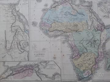 Bella Carta geografica originale dell'Ottocento colorata del continente africano, con sezioni dell'Egitto e del Nord Africa. Misura cm 48x37,5