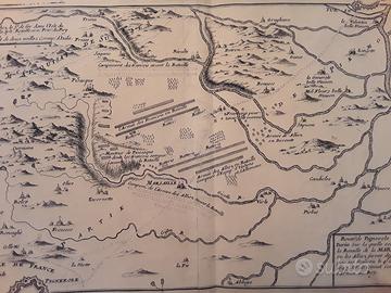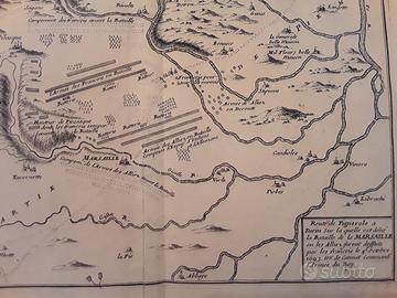 Mappa originale di fine Seicento del cartografo del Re Nicholas De Fer della parte del Piemonte da Pinerolo a Torino, territorio nel quale si è svolta la battaglia della Marsaglia (conosciuta anche come la battaglia di Piossacco) vinta dalle truppe francesi nel 1693. Misura cm 31,5x24