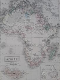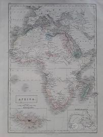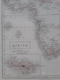 Carta geografica del continente afri ano del 1851 con Madeiira e Port of Aden, incisa da Sidney Hall e pubblicata da A&C Black. Misura cm. 44x31,5