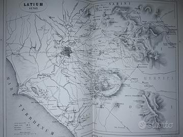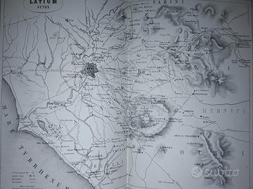 Mappa di metà Ottocento del Lazio su disegno di Vuillemin, incisa da Erhard. Misura cm. 28x24.