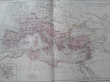 Carta geografica a colori, originale di metà Ottocento del Bacino del Mediterrane durante le guerre della Repubblica Romana. Cm. 48x34