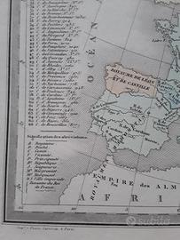 Carta geografica antica originale dell'Ottocento dell'Europa nel 1100 secolo della sua fondazione. Misura cm. 38.5x28