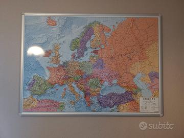 Mappa Murale Magnetica d'Europa - cartografia fisica/politica, su robusto pannello in acciaio smaltato con cornice in alluminio anodizzato.
