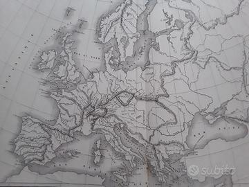 Carta geografica dell'Europa fisica, di metà Ottocento misura cm 47,5x34.