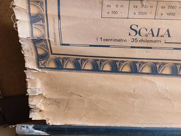 Grande carta geografica fisica Paravia. Carta intestata sottesa da due aste in legno. Presenti alcune lacerazioni.