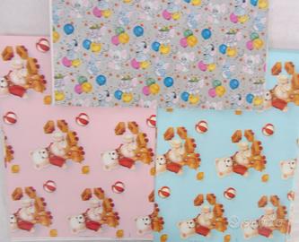 CARTA PER CONFEZIONI REGALO MARCA REX SOGGETTO BIMBI: ----25 FOGLI cm. 70x100 ASSORTITI € 37; ----50 FOGLI cm. 70x100 ASSORTITI € 60 ----PACCO 100 FOGLI cm. 70x100 ASSORTITI € 95 ----ASSORTIMENTO COME DA FOTO ----PER OGNI ACQUISTO SARA' INSERITO NUOVO ANNUNCIO SINGOLO