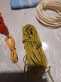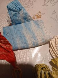 Carta pirka, il filo di carta pirka e' realizzato con una carta speciale. Cellulosa di abete e tinta in vari colori. E' un arte che nasce in Finlandia.