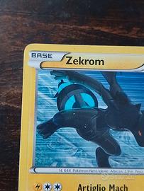 Carta Pokémon Zekrom Base, edizione olografica. - Pokémon: Zekrom - Tipo: Base - Attacco 1: Artiglio Mach (50 danni) - Attacco 2: Incrotuono (80+ danni) - Debolezza: x2 - Resistenza: Nessuna - Costo di ritirata: 2 - Illustratore: Mitsuhiro Arita - Numero carta: 39/116 anno 2013 - Glaciazione Plasma
