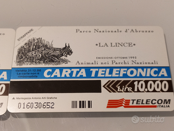 Carte telefoniche Telecom Italia edizione 1995 parco nazionale dell'Abruzzo NUOVE con ancora la linguetta per attivarle alle cabine.
