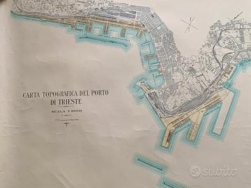 Carta Topografica vintage del porto di Trieste. Misure 94x66cm
