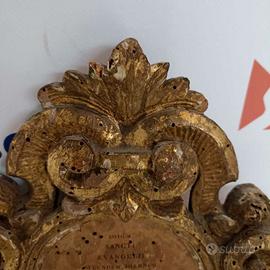 Cartagloria in legno intagliato a riccioli, dorato, al centro incipit del