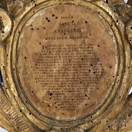 Cartagloria in legno intagliato a riccioli, dorato, al centro incipit del