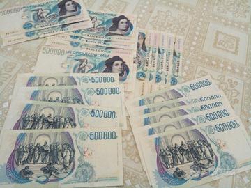 vendo in BLOCCO, ripeto in BLOCCO e NON singolarmente 18 pezzi, di banconote Italiane da cinquecento mila lire dette banconote sono state conservata e sono al 90% in ottimo stato (NO F.D.S. OK ?), mi ripeto per la vendita è in BLOCCO, e non vendibili separatamente, il costo totale è di euro 4500,00 possibili trattabili dopo visione e pagamento contanti. No Curiosi non mi dite non valgono oppure non li prendi oppure costano meno a me non importa nulla OK?