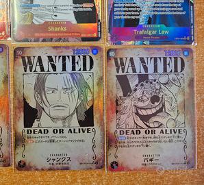 Lotto di 12 carte custom One Piece manga e wanted da OP01 a OP09.