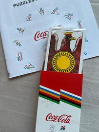 Carte da briscola a tema Coca-Cola olimpiadi invernali Milano cortina 2026 e brochure di giochi rompicapo a tema