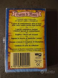 tratta di un mazzo di carte del gioco"Champions: Guerra di Mostri", un gioco di carte collezionabili (CCG) fantasy pubblicato originariamente nel 1995 da Seven Towns e Gibson Games. Dettagli del Prodotto Nome:Champions: Guerra di Mostri (Champions: Monster Wars nella versione inglese). Contenuto della confezione mostrata:Mazzo introduttivo ("starter deck") contenente 44 "Carte-Guerrieri Cambiaforza". Tipologia di gioco:Un gioco di combattimento fantasy con carte, che fa parte di una serie più ampia che include anche "Champions: Guerra di Eroi" (Medieval Battle). Editore/Anno:Editrice Games (EG) ha curato la versione italiana, il gioco originale è del 1995.