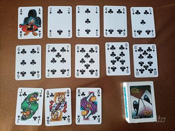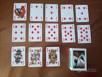 Carte da gioco francesi della MODIANO da collezione con personaggi TOPOLINO. Nuove, mai usate. Ne posseggo 2 mazzi uguali, stesso colore sul retro. Vendo con formula visto e piaciuto a 12 euro al mazzo, insieme a 22 euro.