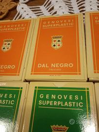 10 mazzi di carte Genovesi Dal Negro Superplastic usate ma in ottime condizioni,un mazzo è ancora incelofanato,52 carte per ogni mazzo.Alcune scatole sul retro riportano una lettera scritta a penna, non so il perché, ciò non toglie che le carte adatte per Chemin de Fer o Baccarà siano ancora in perfette condizioni