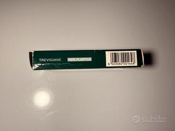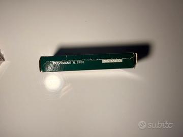 In vendita mazzo di carte regionali Trevigiane (Venete) prodotto dalla celebre fabbrica triestina Modiano, sinonimo di qualità e tradizione dal 1868. Si tratta del modello N. 89/90, realizzato interamente in 100% Plastica. A differenza delle carte in cartoncino, queste sono estremamente resistenti, flessibili, lavabili e garantiscono una fluidità nel mescolamento e nella distribuzione senza pari. Condizioni: Usate pochissimo, praticamente pari al nuovo. Le carte non presentano segni di usura, pieghe o sbiadimenti. Completezza: Mazzo completo di tutte le carte. Packaging: Scatola originale inclusa, con minimi segni di conservazione (come da foto). Caratteristiche: Made in Italy, alta resistenza, ideali per circoli, appassionati di Briscola e Tressette o collezionisti. Un mazzo professionale che dura una vita, perfetto per chi cerca la massima qualità nel gioco.