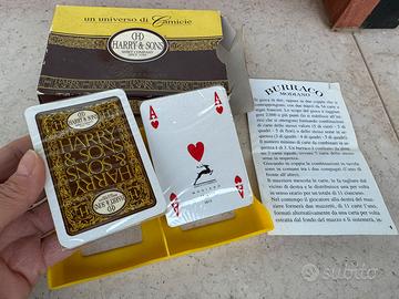 Vendo carte da gioco per Burraco della Modiano (Trieste) con logo Harry & Sons sulla confezione e sul dorso delle carte.