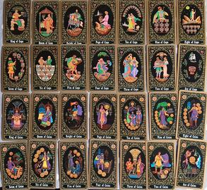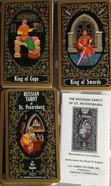 I Russian Tarot of St. Petersburg (Tarocchi Russi di San Pietroburgo) sono stati dipinti da Yury Shakov , un artista famoso per le sue miniature in lacca e le rappresentazioni impeccabili del folklore russo e delle fiabe. Questo splendido mazzo di 78 carte riflette non solo il suo stile superbo e la sua competenza artistica, ma anche le sue interpretazioni originali dei tarocchi, presentando gli archetipi tradizionali dei tarocchi attraverso le immagini della storia e della cultura russa.