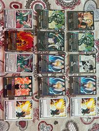 Carte Dragon Ball Super. Mazzo Composto da: - Carta Kami (FB07-100) (2 pz) - Carta Black Smoke Dragon (FB07-030) -Carta Android 18 (FB06-014) (3pz) -Carta Piercing Sword of Light (FB06-042) (4pz) -Carta Bualma/Son Goku: Childhood (SB01-057) (2pz) -Carta Master Roshi (FB07-101) -Carta Meta-Cooler (FB07-093) (2pz) -Carta Krillin (FB07-103) -Carta Whirlwind Spin (FB07-044) (2 pz) -Carta King Cold (FB07-080) -Carta Omega Shenron (FB07-035) (2pz) -Carta Yamcha (SB01-059) -Carta Son Gohan: Youth (FB07-106) (2pz) -Carta Bulma (FB07-113) -Carta Son Goku (FB07-104) Tutte imbustate singolarmente, MAI UTILIZZATE. Acquistabili anche singole