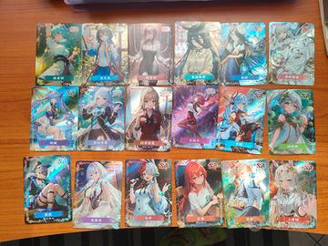 Vendo il lotto delle carte rarità SR tipo 1 della serie Flower Girl 1 (stessa tipologia delle Goddess Story) quasi completo. Riporto prima l'elenco dei numeri mancanti: Mancano tipo 1: 3, 4, 20, 21, 23, 25, 37, 38, 39, 41, 43, 45, 50, 52, 53 Di seguito l'elenco delle carte incluse: tipo 1 HYSN-SR-01 C.C.1 HYSN-SR-02Artoria Pendagron1 HYSN-SR-05Yae Miko1 HYSN-SR-06Yae Sakura1 HYSN-SR-07Tomoe Gozen2 HYSN-SR-08Okita Souji2 HYSN-SR-09Hatsune Miku2 HYSN-SR-10Haru Urara2 HYSN-SR-11Tokai Teio2 HYSN-SR-12Mitsuri Kanroji1 HYSN-SR-13Amelia Watson2 HYSN-SR-14Megumin1 HYSN-SR-15Asuna Yuuki3 HYSN-SR-16Takina Inoue3 HYSN-SR-17Amor (Caren)2 HYSN-SR-18Kal'tsit2 HYSN-SR-19Ginko Sora1 HYSN-SR-22Mirai Kuriyama1 HYSN-SR-24Rei Ayanami1 HYSN-SR-26Luo Tianyi1 HYSN-SR-27Makima1 HYSN-SR-28Manhattan Cafe2 HYSN-SR-29Rice Shower1 HYSN-SR-30Morgan Ie Fay1 HYSN-SR-31Keqing1 HYSN-SR-32Mejiro McQueen1 HYSN-SR-33Kei Karuizawa1 HYSN-SR-34Kafka1 HYSN-SR-35Shenhe1 HYSN-SR-36Nahida1 HYSN-SR-40Silver Wolf1 HYSN-SR-42Sirius1 HYSN-SR-44Uta1 HYSN-SR-46Shana1 HYSN-SR-47Yoimiya1 HYSN-SR-48Oguri Cap1 HYSN-SR-49Hinata Uzamaki1 HYSN-SR-51Ereshkigal1 HYSN-SR-54Skadi1
