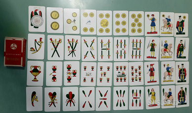 Mazzo 40 carte da gioco vintage, della Fabbrica carte fa giuoco Modiano spA di Trieste serie regionali: siciliane numero 96 del settembre 1971.
