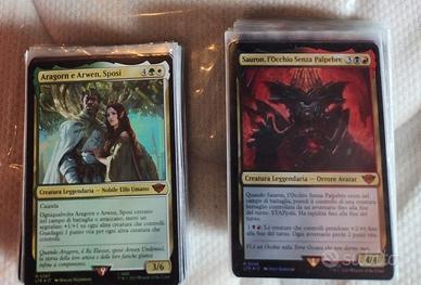 10 raccoglitori, vari mazzi, una scatola di terre base, starter set dell'edizione il signore degli anelli, carte foil, tutto in ottimo stato