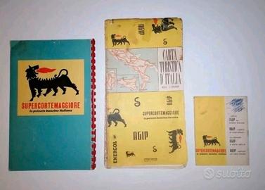 Carta d'Italia Agip del 1954 scala 1: 1 000 000 + Agip Supercortemaggiore in scala 1: 1.000.000 + Agip d'Italia scala 1: 2.500.000 € 15.
