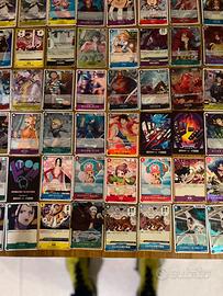 112 carte One Piece giapponesi in condizioni eccellenti, tutte integre senza nessun difetto. Non posso elencarle tutte perché sono tantissime, quindi dalle fotografie dovreste riuscire a vederle tutte. La parte posteriore non l’ho fotografata ma sono tutte come quella che vedete in una di queste immagini che ho inserito. Sono comprese anche le scatole originali che le contengono che sono due.
