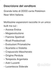 2000 carte Pokemon in condizioni near mint purtroppo ho bisogno di fare spazio e vendo la mia collezione, la descrizione è nelle foto