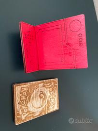 Carte Pokémon ENTEI in legno con effetto 3D ed elegante supporto realizzate artigianalmente a mano, con essenze e rifiniture di noce e ciliegio.
