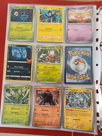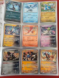 lotto carte Pokémon in condizioni NM delle espansioni Spada e Scudo e Violetto e Scarlatto, comprende 3 carte EX e il cofanetto originale del set allenatore fuoco bianco