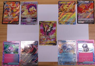 Vendo un lotto di 9 carte pokemon originali, ma si possono acquistare anche singolarmente. Sono tutte in condizioni perfette, soprattutto Moltres di Galar V Gold.
