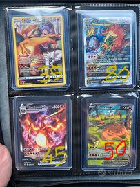 Vendo carte Pokemon singolarmente. Prezzi scritti sulle carte. Ritiro a mano zona Brescia o provincia. Vengo a portarle in caso di acquisto di oltre 100 euro di carte. Spedizione solo dopo bonifico istantaneo. Preferisco sempre ritiro a mano per più trasparenza tra venditore e compratore. Altri lotti album nella mia pagina subito. Charizard Pikachu Mew Mewtwo ex Gold ascesa eroica fiamme spettrali mini tin lotto