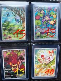 Vendo carte Pokemon singolarmente. Prezzi scritti sulle carte. Ritiro a mano zona Brescia o provincia. Vengo a portarle in caso di acquisto di oltre 100 euro di carte. Spedizione solo dopo bonifico istantaneo. Preferisco sempre ritiro a mano per più trasparenza tra venditore e compratore. Altri lotti album nella mia pagina subito. Charizard Pikachu Mew Mewtwo ex Gold ascesa eroica fiamme spettrali mini tin lotto