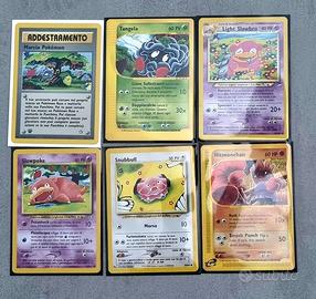 Vendo piccolo lotto di carte pokemon, vintage e moderne , tutte disegnate da Komiya , tutte italiane e nearmint , a parte la carta dell'ultima foto ,che è inglese e good , scambio a mano in provincia di Milano e dintorni.