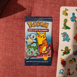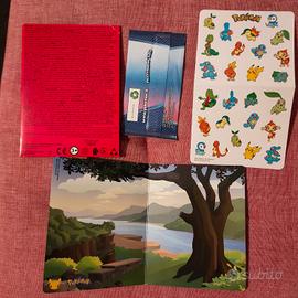 Aperta solo confezione esterna per fotografare il contenuto interno, come da foto (giochino a percorso, busta di carte sigillata, cartoncino con doppio sfondo e adesivi vari Pokémon da posizionare)