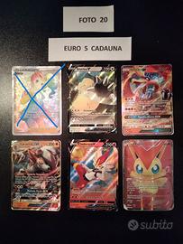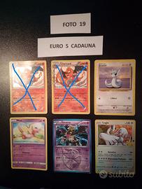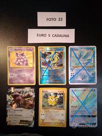 Vendo carte Pokemon varie. Euro 5 cadauna. Spedizione Euro 3 con POSTA 1 oppure per visione e/o ritiro diretto sono a Bollate ( Milano ). Pagamento anticipato con Paypal o bonifico bancario . Per informazioni sulla/e carta/e desiderata/e si prega cortesemente di scrivere per praticità nome della/e carta/e ed il numero della/e foto che la/e contiene.