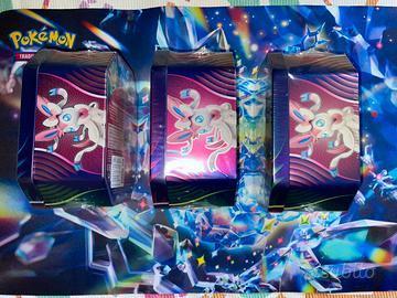 Vendo tre tin festa evolutiva sylveon glaceon e leafeon gx introvabili in italiano ancora sigillate con all’interno 2 pacchetti di tempesta astrale 1 di ultra prisma e 1 di evoluzioni