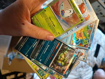 Vendo circa 11 kg e più di carte Pokémon miste. Con miste intendo che ci sono rare holo, rare reverse, comuni, non comuni, codici, allenatori, strumenti ecc di varie serie, tanto per dirne qualcuna c'è ossidiana infuocata, crepuscolo mascherato, avventure insieme, scintille folgoranti, evoluzioni prismatiche, rivali predestinati, nero e bianco, fiamme spettrali.
