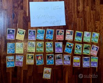 157 carte + 2 gettoni + 13 buste porta figurine. Per info contattatemi Lista carte: Vullaby (68/98), Axew (86/101), Shinx (43/99), Karablast (8/101), Gothita (44/98), LTt. Surge's Rattata (85/132), Drifloon (50/124, 46/90), electike (41/124), Grimer (52/99), Strmie (64/102), Cyndaquil (61/123), Baltoy (53/107), Zubat (70/82), lileep (56/92), Bellsprout (49/64), Poliwag (59/102), Pineco (62/90, 77/105), snivy (1/114), weedle (69/102), Trubbish (53/124), tentacool (56/62), giovanni's nidoran (75/132), erika's oddish (70/132), Ralts (61/101), Spearow (62/64), Solosis (55/114), Beldum (55/107), slowpoke (55/62), unown (58/64), Wynaut (71/92), Kabuto (56/75), misty's psyduck (90/132), pikachu (60/64), Lanturn (32/64), Marowak (39/64, 44/102), Machoke (39/92), Golduck (35/62), Nuzleaf (71/99), Krokorok (61/98), Roselia (12/124), koga's pidgey (49/132), golbat (29/64), weepinbell (47/92), Piloswine (44/111, 48/102), Dratini (26/102), Claydol (38/110, 64/124),Tentacruel (44/62), kadabra (32/102), poliwhirl (38/102), Basculin (25/98), Cloyster (32/62), Gothorita (45/98), Swablu (104/124), Electrode (34/102), Starmie (48/107), Boldore (51/98), Frillish (34/99), Watchog (79/98), Lairon (79/124), Croconaw (41/95), Klang (75/98), Zweilous (96/124), beartic (31/98), reshiram (21/99), Zekrom EX (51/99), Mamoswime (5/102), escavalier (80/101), tornadus (98/98), metagross (18/90), darmanitan (25/114), Hydeigon (98/124), Walrein (31/124), Gigalith (53/98), jellicent (35/99), Roserade (23/95), Dusclops (7/107), Jigglypuff (65/112), Lt. surge's voltorb (84/132), totodile (67/101), Brock's Sandshrew (71/132), abuto (50/62), Makuhita (65/107), Minccino (88/114), Gligar (49/90), Growlithe [Combustion] (11/99), Meowth (80/99), Pansage (6/99), Buizel (32/124), Cubchoo (36/99, 28/98, 29/98), Deino (94/124), Cubone (60/124), Swinub (079/102), Klink (74/98), Patrat (78/98), murkrow (72/124), Horsea (49/62), Sabrina's Abra (91/132), Golett (58/124), roggenrola (49/98), ratata (61/102)..........