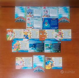 Varie carte collezionabili Pokémon della serie "Pokémon Topps Trading Cards", di prima generazione (1998) e seconda generazione (2001), edizioni italiane.