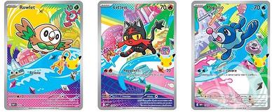 Scambio carte Pokemon Turtwig Chimchar Piplup per Rowlet Litten Popplio, carte aperte e conservate nella sleeve toploader. Pokemon trading card game First partner illustration collection