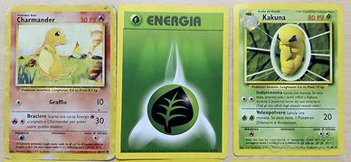 10 carte Pokemon tutte conservate molto bene tranne Charmander 46/102 non in buone condizioni (si veda la foto)
