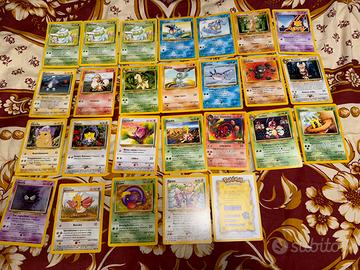 Collezione carte Pokémon vintage originali (anni 1999- 2002) - WOTC - Base, Jungle, Fossil, Neo, Team Rocket Descrizione: Vendo lotto di carte Pokémon originali vintage Wizards of the Coast (fine anni "90 / primi 2000). Collezione autentica, conservata da collezione personale. Incluso nel lotto: Carte olografiche vintage (Base Set e Neo) • Carte non olografiche (Base, Jungle, Fossil, Team Rocket, Neo) Carte allenatore e energie Lingue: principalmente italiano, presenti anche inglese e tedesco Molti Pokémon iconici (Pikachu, Charmander, Squirtle, Bulbasaur, Gyarados, ecc.) Condizione: Carte in condizioni buone, con normali segni del tempo. Nessuna piegata gravemente o distrutta. Non gradate PSA/CGC. Note: • Lotto venduto in blocco, non separo Ideale per collezionisti, nostalgici o rivendita • Spedizione con imballo protetto oppure ritiro a mano • Foto reali delle carte in annuncio
